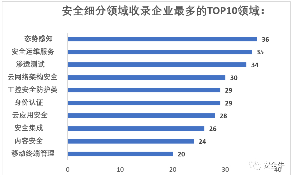 4、第七版全景圖報告安全細分領域收錄企業最多的TOP10領域為: