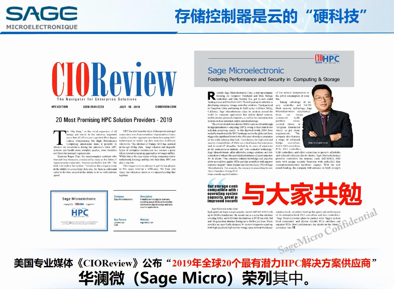 剛剛過去的2020年6月,美國權(quán)威科技媒體CIO Review評選了在HPC(High Performance Computing高性能計算)領(lǐng)域最富有潛力的20大企業(yè),兩家中國企業(yè)入列,它們是“華瀾微電子”(SageMicro)和瀾起科技(Montage)。