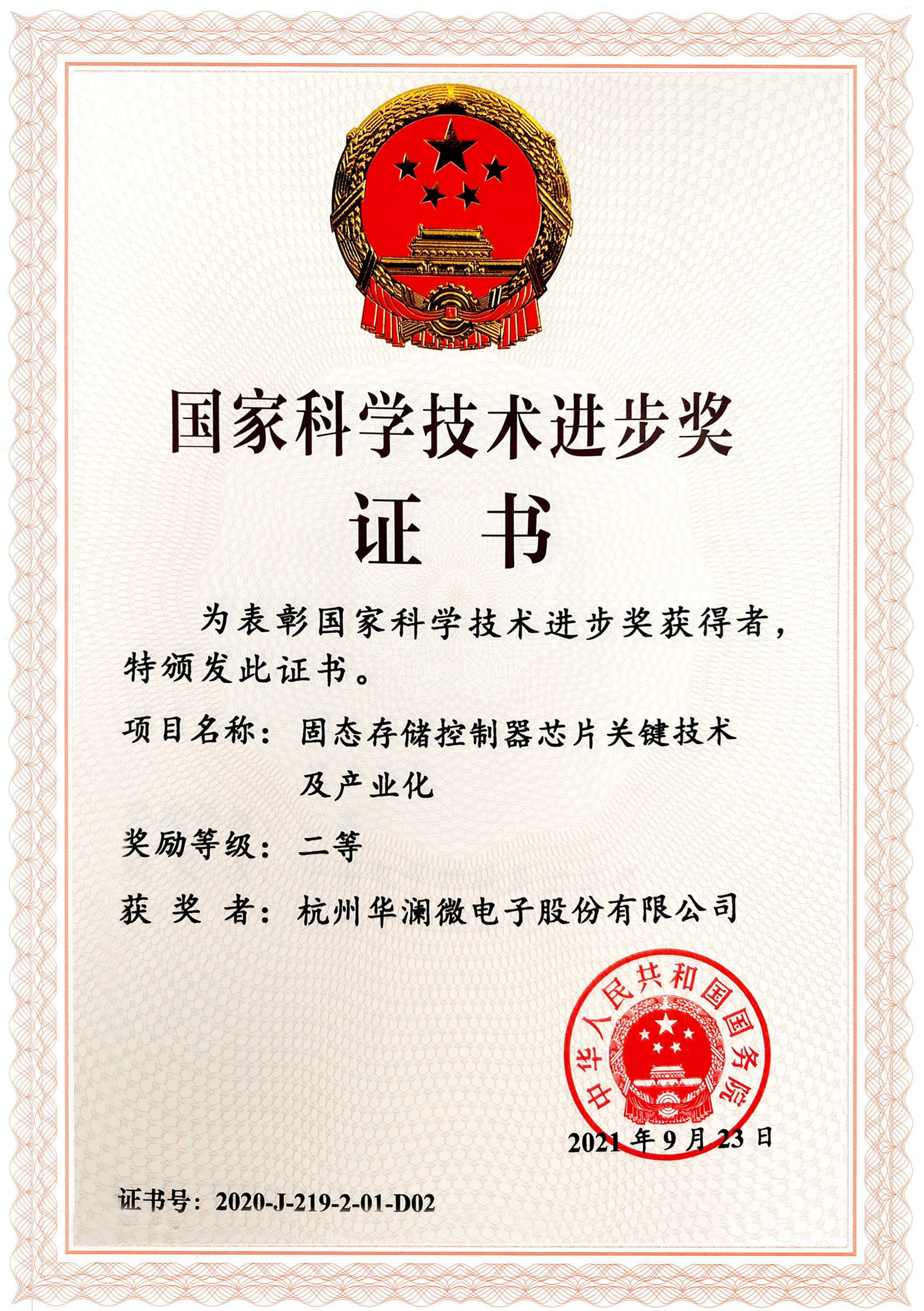 本次技術獎共評選出264個項目、10名科技專家和1個國際組織。其中,國家科學技術進步獎157項:特等獎2項,一等獎18項,二等獎137項。由杭州華瀾微電子股份有限公司領銜完成的“固態(tài)存儲控制器芯片關鍵技術及產業(yè)化”項目榮獲2020年科學技術進步二等獎(編號:J-219-2-01),本項技術是新一代電腦硬盤、大數(shù)據(jù)存儲系統(tǒng)的芯片級硬科技,已經(jīng)得到了國產化推廣應用。